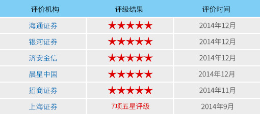 本基金被多家机构评为五星基金: