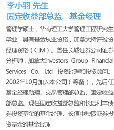 李小羽:共有六人,四个做投资管理,二个专职银行间市场交易员。主要成员从业年限都超过10年。长期管理业绩稳定处于前列。